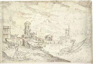 Sudliche Hafenstadt Mit Segelschiffen Und Vielen Figuren
