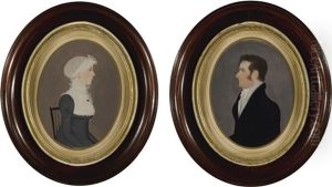 Self-portrait met het portret van zijn vrouw Margaretha van Rees en hun dochtertje Maria