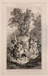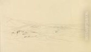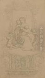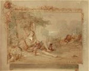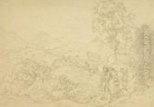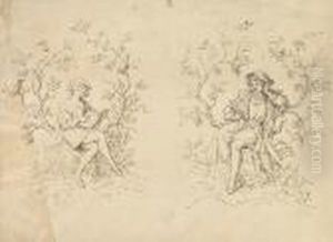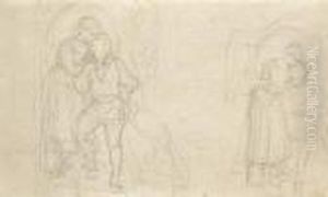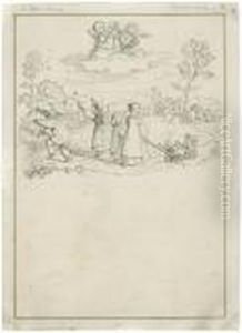 Skizzenblatt Mit Figurlichen Szenen Und Einer Landschaft.
