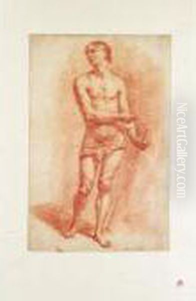 Study Of A Standing Male Nude Holding A Staff