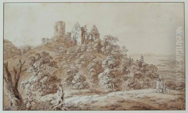 Hugellandschaft Mit Ruinen Und Personenstaffage