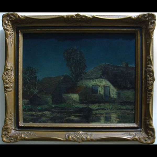 Farm, Evening (+ Windblown Trees; 2 Works) Oil Painting by Adrian de Winter