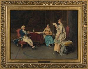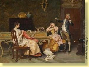 Galant Wooing. Courtly Company Playing Palour Games In The Salon.