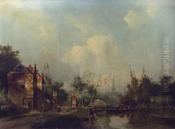 Hollandische Dorfstrase Am Kleinen Kanal, Mit Personenstaffage