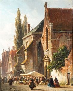 Markttafereel Op Een Hollands Kerkplein