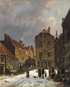 Vegetable Sellers In A Snow-covered Dutch Town