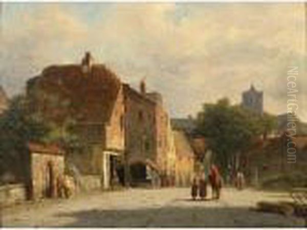 Figures In A Sunlit Dutch Town