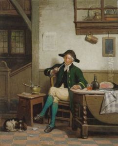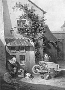 Eine Hausmagd Reinigt Vor Dem Haus Einen Messingkessel