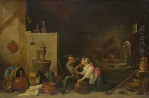 Receiving His Affections/an Interior Genre Scene