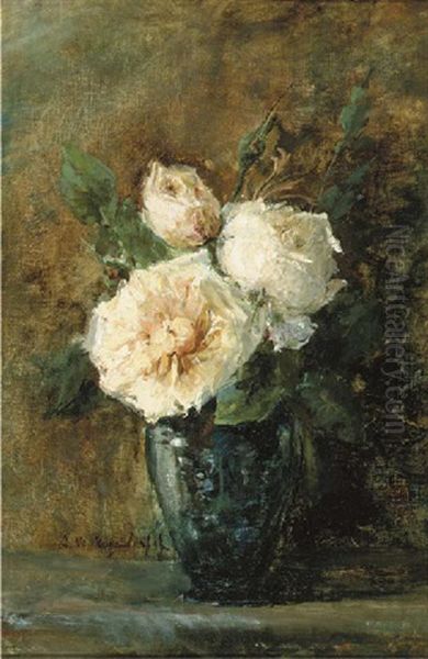 White Roses In A Blue Vase