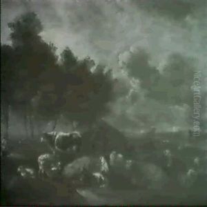 Landscape With Cattle And A Dairy Maid, Small Craft On A River Beyond