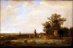 Panoramic Landscape with Shepherds Sheep and a Town Beverwijk in the Distance