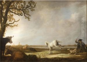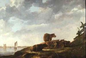 A River Landscape With A Herd Of Cows And A Figure With His Dog Resting In The Foreground