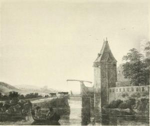 A River Landscape With Peasants Unloading A Barge, Dordrecht Beyond