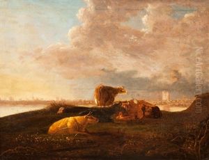 A River Landscape With Seven Cows And A Distant View Of The Tower Of Merwede