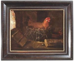 A Barn Interior With A Four-horned Ram And Four Ewes, And A Goat, With A Still Life Of A Basket And Upturned Pots To The Right