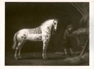 A Landscape With A White Horseand Cart By A Farmhouse, Figures In The Foreground
