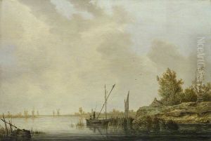 River Landscape With Cows And A Shepherd Resting On A Bank