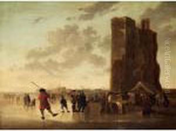 A Winter River Landscape With Skaters Before The Huis Te Merwede Near Dordrecht