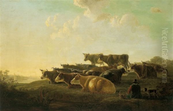 Ruhende Kuhe In Einer Hollandischen Weidelandschaft