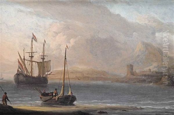 A Mediterranean Coast With A Dutch Three-master And A Fishing Boat