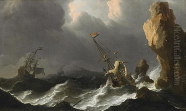 Hollandische Schiffe Im Sturm Vor Einer Felskuste