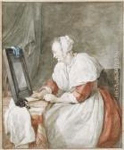 A Woman Seated At A Dressing Table
