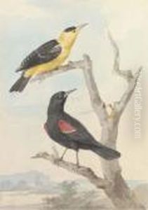 A Study Of A Golden Oriole, A Kingfisher, A Great Tit, A Bullfinch And Three Other Songbirds In A Landscape Setting