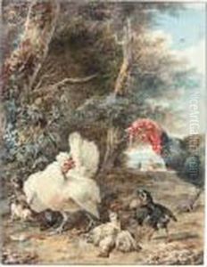 A) A Southern Landscape With A Peacock, A Monkey, Parrots, Hens And Chicks; B) A River Landscape With A Watermill, A Swan And Other Waterbirds In The Foreground