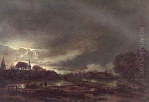 Bring the timeless beauty of Aert van der Neer's A Moonlit River Landscape With A Village Beyond into your home with a handmade oil painting reproduction. Carefully recreated on canvas by skilled artists using traditional techniques, this piece captures the delicate brushwork, subtle light, and vibrant color of the original masterpiece. With museum-level quality and rich texture, it brings elegance and artistic depth to any space. Enjoy free shipping and make this masterpiece a part of your personal collection.