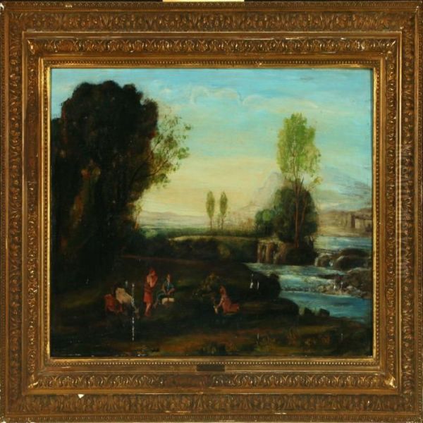 Archaic Landscapewith Animals And Figures At A Stream