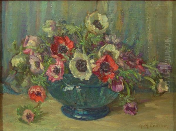 Still Life With Anemones In A Blue Glass Bowl