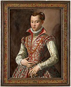 Portrait Od Duchess Bianca Capello In An Embroidered And Jeweled Bodice With White Sleeves And Gauffered Collar