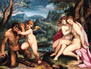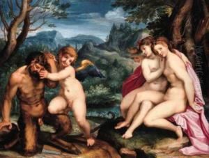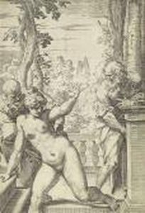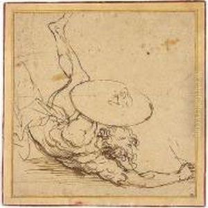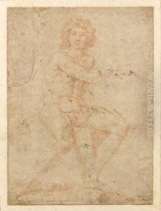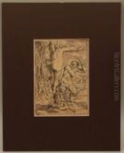 A Standing Man In Profile Holding A Spear, With Smaller, Rapidlystudied Nude Figures To The Right