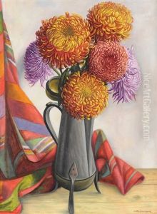 Stillleben Mit Chrysanthemen In Grosser Henkelvase