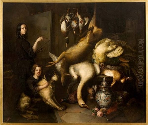 Peinte Dans Son Atelier Devant Une Nature Morte Au Gibier