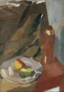 Stilleben Med Flaska Och Frukter