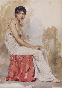 Bildnis Einer Jungen Frau (kniestuckende Frau In Weisser Seide & Biedermeierhaube...)[cr:wvz-kunstmsm Bern Kat.nr.403