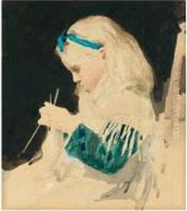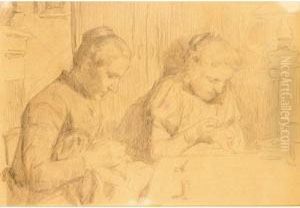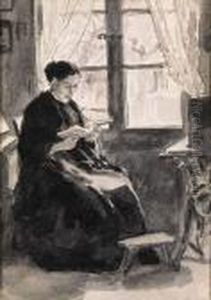 Eine Bauerin Aus Ins Beim Stricken In Der Kuche