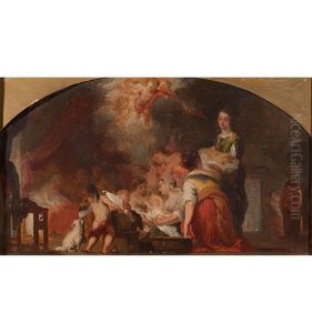 Grossvater Mit Schlafendem Kind Auf Der Ofenbank