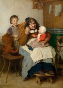A Grandmother At A Spinning Wheel And A Sleeping Boy On An Oven Bench