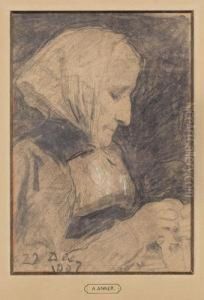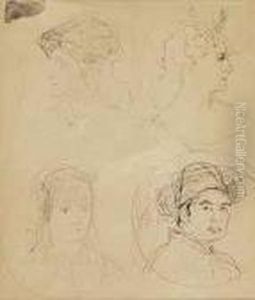 Kopf Einer Bauerin. - Handstudien. 2 Skizzenblatter