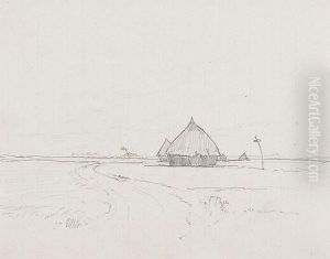 Landschaftspartie Mit Bauernhausern Und Baumen.