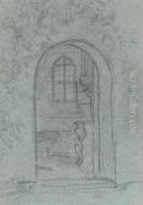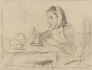 Frau Am Tisch -verso: Interieur Mit Tisch
