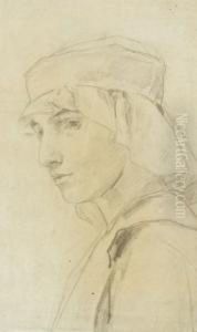 Sitzendesmadchen Mit Haarband Und Schultertuch, Nach Rechts