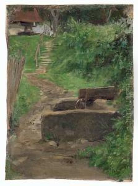 Quelle Mit Brunnentrog Im Garten - Vorstudie Zu ‹zwei Kinder Mit Wassereimer›