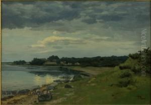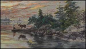 An Evening Landscape With Cattle At A Lakeshore