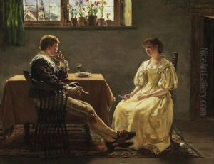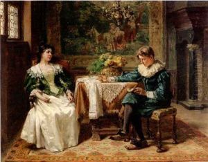 Interior With Monk Reading To Laughing Woman