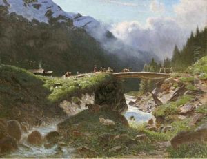 Walliser Alpenlandschaft Mit Kleiner Viehherde
