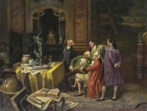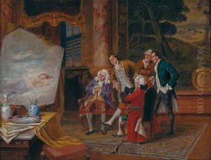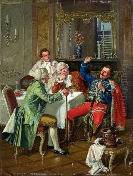 Herrenrunde Der Rokokozeit In Einem Salon